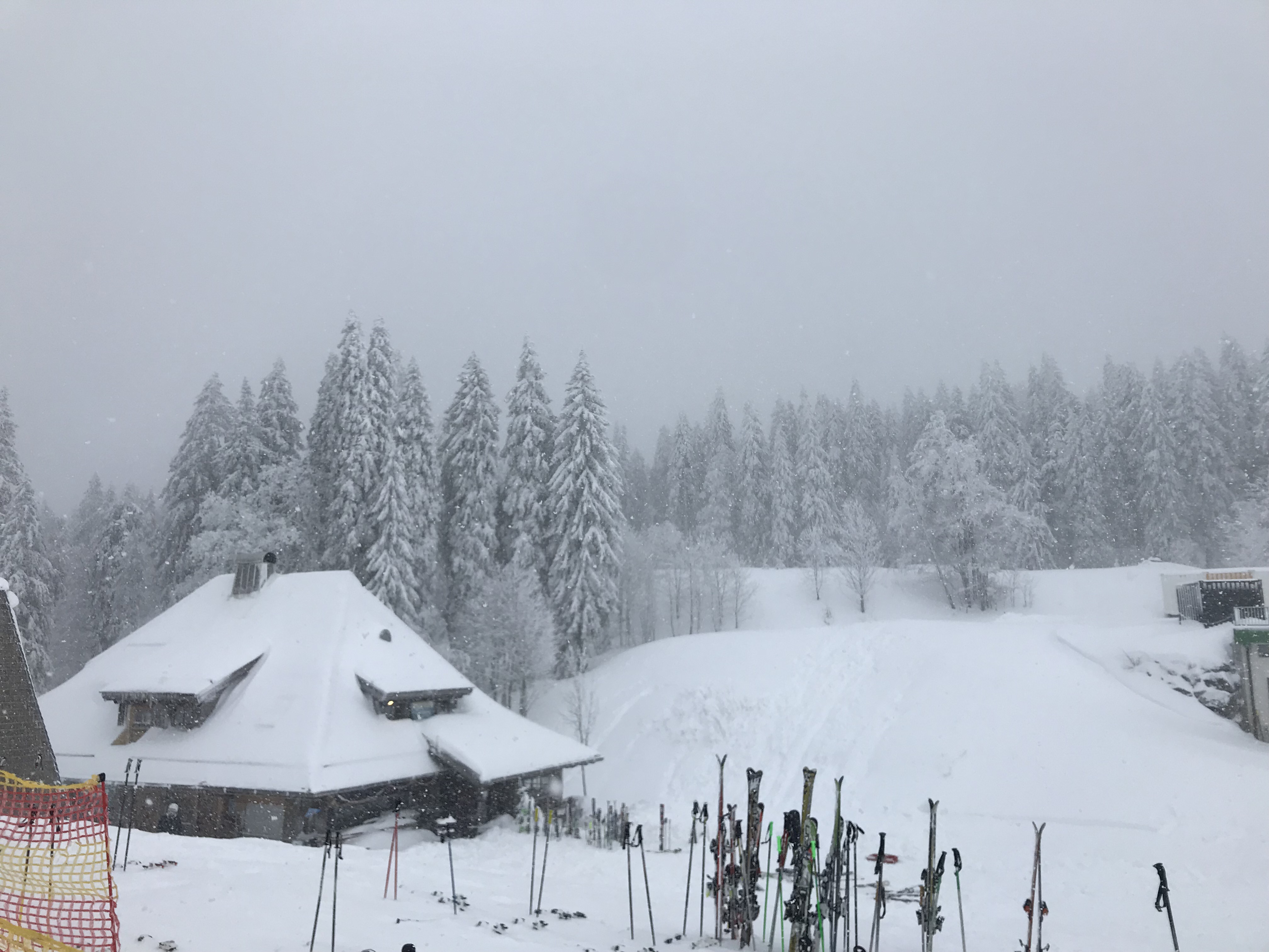 After a brief repack and adjustment, we continued on and arrived. There’s a pretty large parking facility located only about a 10 minute walk from the western slope side. When you leave, if you keep your lift ticket, the entire day is only 10€ with the 3€ refund (pfand) on your ticket. The infrastructure and restaurants are all at the base below the slopes. Food and great Rothausbier are easy to find; however, during a busy weekend it can be a little difficult to find a table.The resident ski school, Schneesport Thoma, was easy to find for registration. It was also pretty reasonable with a 4-hour (2 in the morning, 2 in the afternoon) lesson for both my children only costing 80€…depending on how much you love time to yourself on the slopes, this price is great.