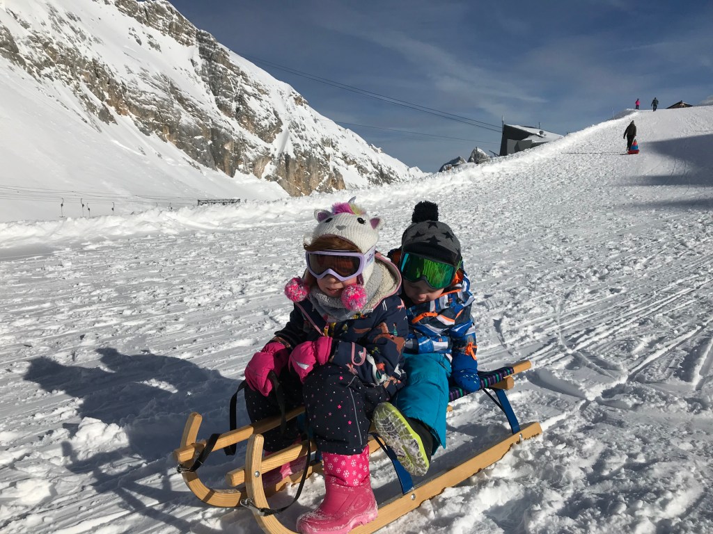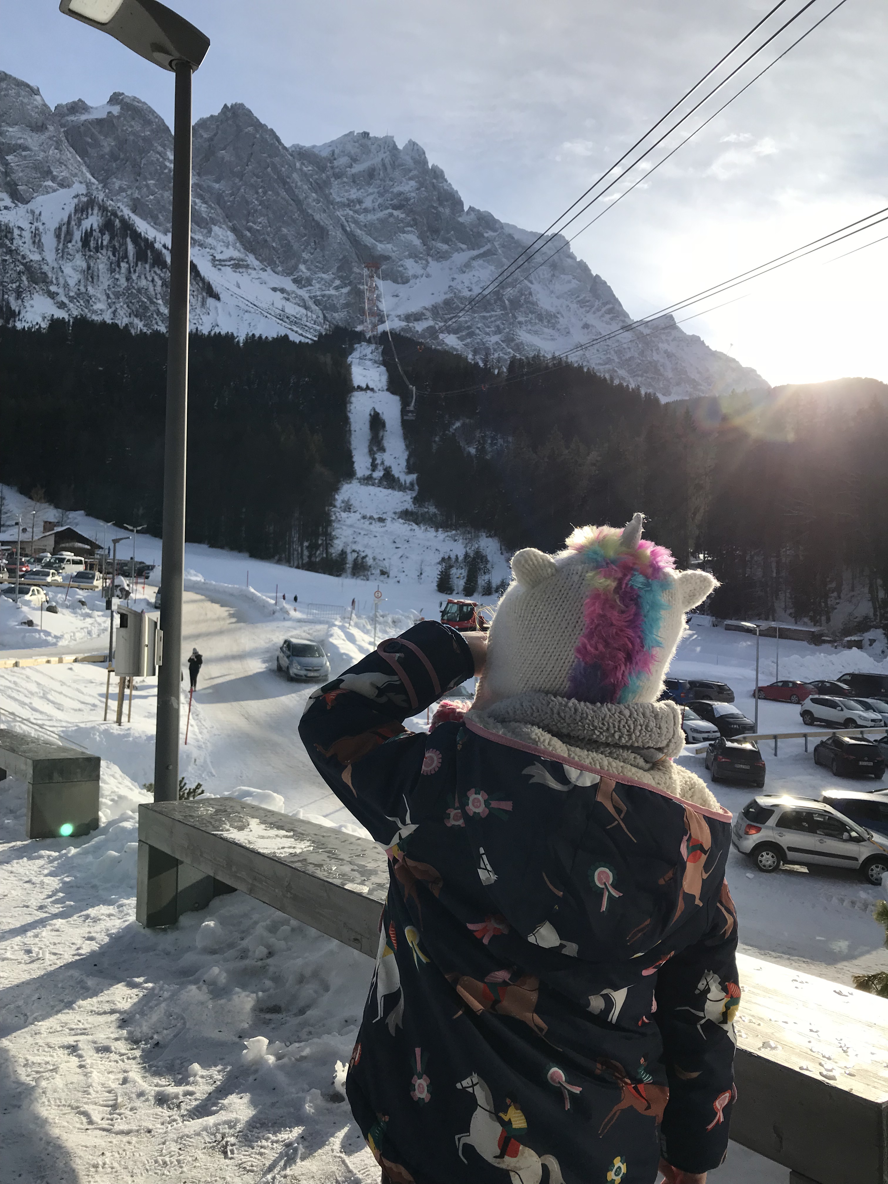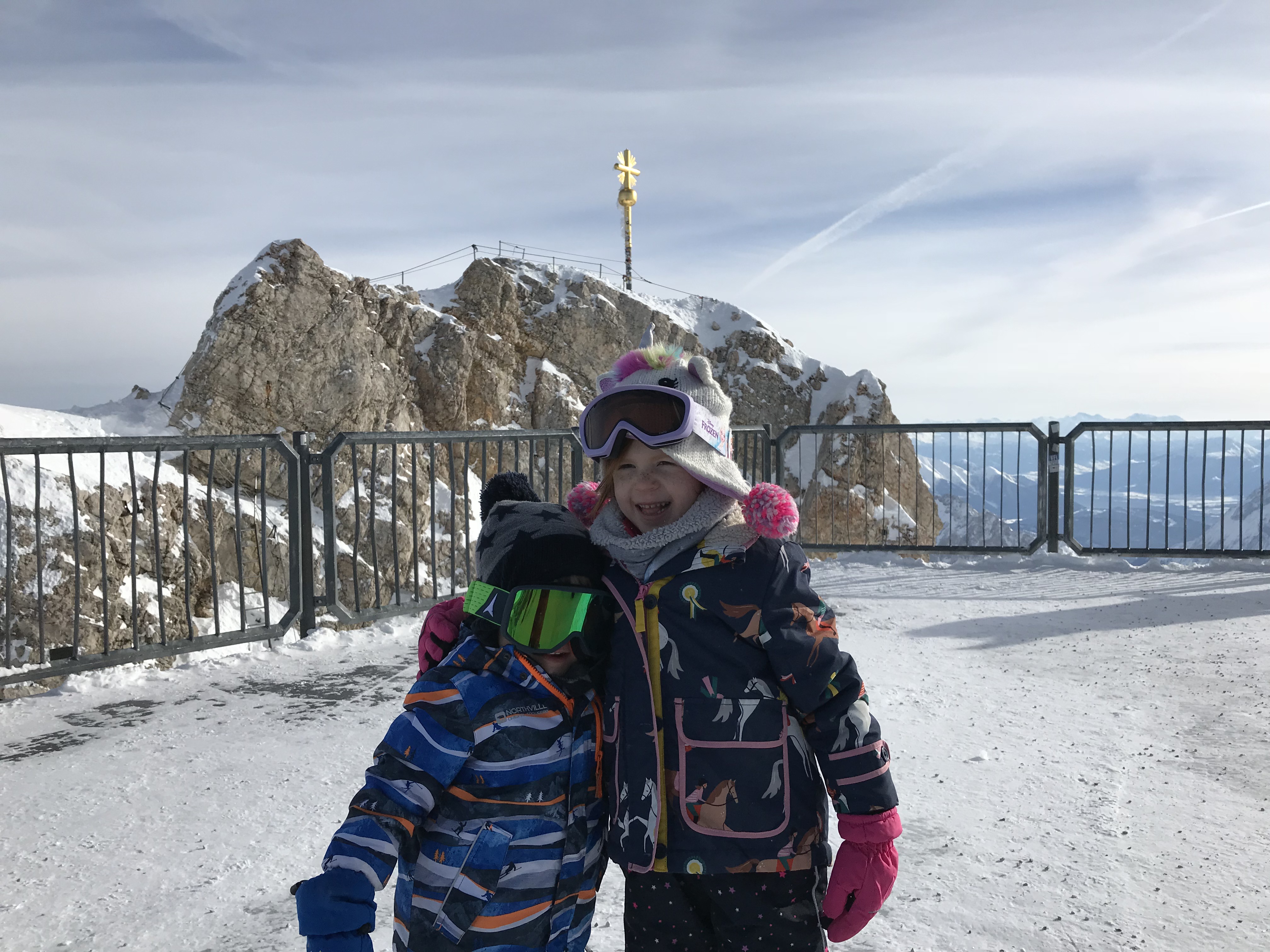 We intended for just the kids to play on their skis a little on this trip. Once at the top, you can either visit the ski area or you can gawk and take photos of the country’s highest Gipfelkreuz (summit cross). There are 3 or 4 places to get good hearty food and wonderful Bavarian beer. Sidenote: don’t order a Pils because the Bavarians will get all butt-hurt that you didn’t call it a Helles. Just a head’s up… So, my issue with taking kids up to the Zugspitze to work on skiing: extremely limited space for your kids to practice.