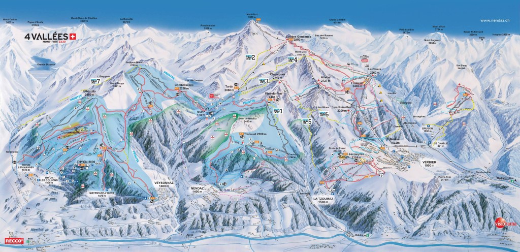The actual ski area stretching across this region is called the 4 Vallées and it consists of Nendaz, Verbier, Thyon, and Veysonnaz along with a few other small villages dotted around the region. This area is completely huge and by no stretch of the imagination can it fully be experienced in a few days’ time. Especially if your kids are doing ski school. More on that in just a moment.