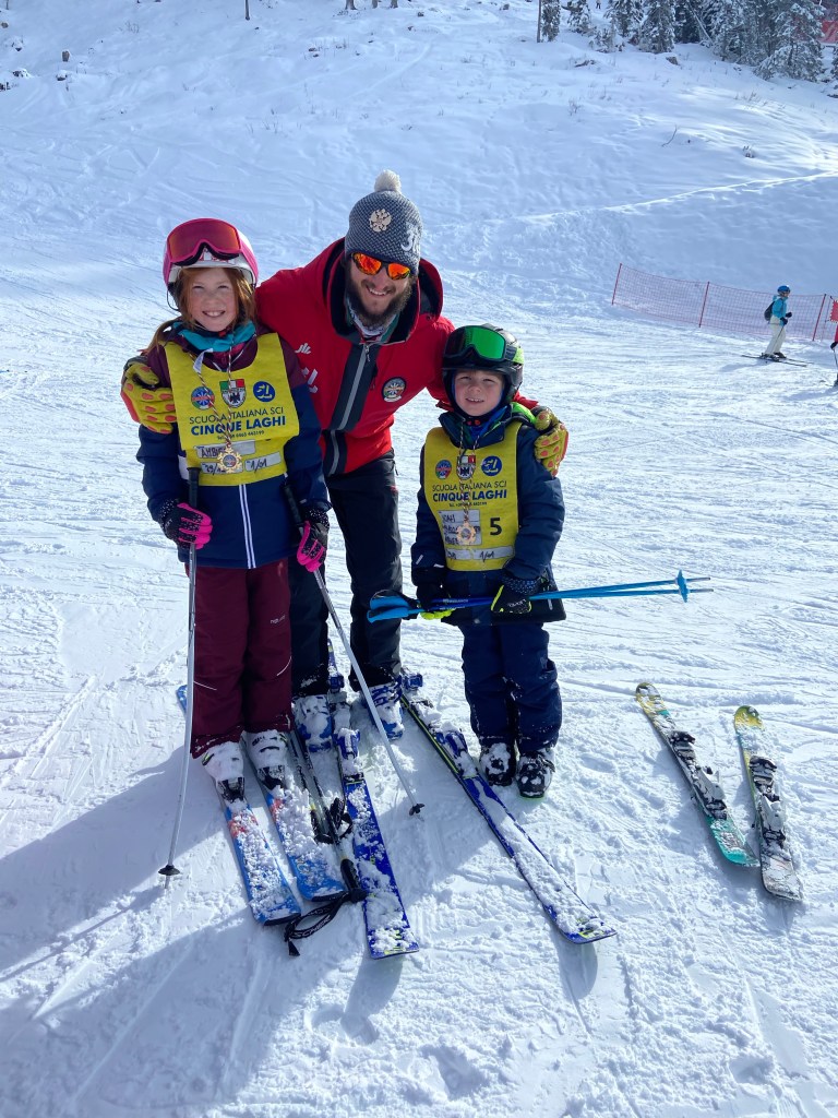 The official village website lists a ton of schools both ski and specific to snowboarding courses. I browsed most of the ski schools and came to realize that a lot of the schools offer minimum five and six day courses. We could’ve done this but, to be totally honest, after four days of slope time even I need an off day to spend at the pool or slowly walking around town. I found Scuola Italiana Ski Laghi both via the village site as well as our hotel’s recommendation. They were more flexible in that they offered anywhere between four to six days’ length of classes in groups of either four or eight. Since I’m not made of money, contrary to what you might think 🙃, I opted for the larger group course for four days. The kids would need a break after so many long days on the slopes, anyway.