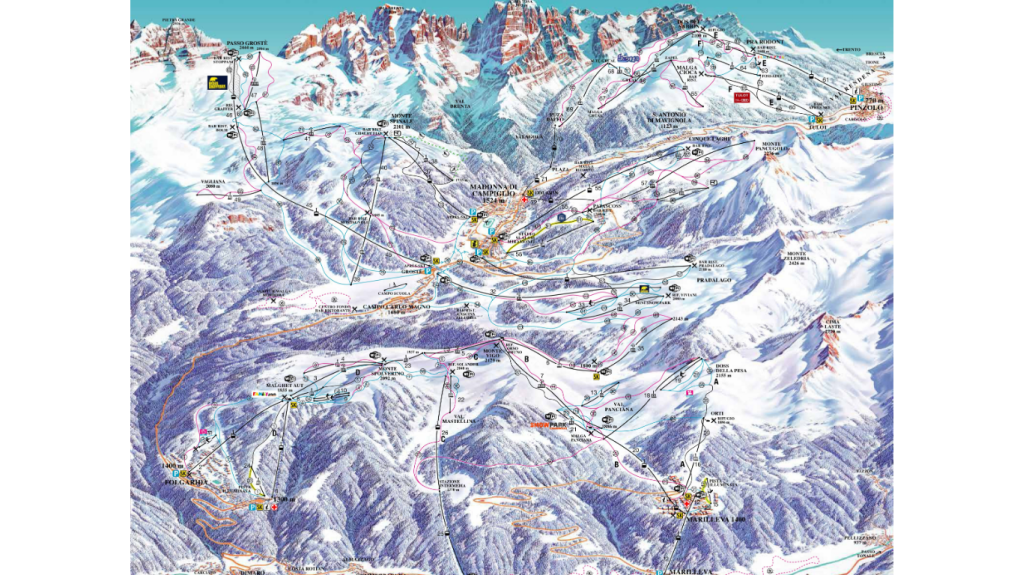 On non-powder days, groomed slope quality was still surprisingly good even though the temps had been a little mild for the season. The lower reaches going into the village and surrounding area were really ski’d out by 1400, but I still found the groomed runs in the lower reaches to be quite nice all things considered. On top of that, there are at least a half dozen long runs that take you from around 2k meters straight into the village and wider hotel areas of Campiglio. I thought this was really really cool considering the fact that, when I see it, there is usually just a single run going all the way back down into town from the upper altitudes at other slope regions.