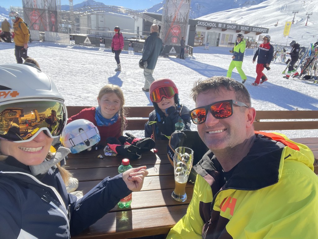 There is a small umbrella bar at the base of the Alpenrosenlift with a burger food truck for those quick drink and food needs. We call these “Patience breaks”, ‘cuz skiing with a family of 4 can be….tense. If you want to be more frugal, naturally one can always pack food in order to save some cash.