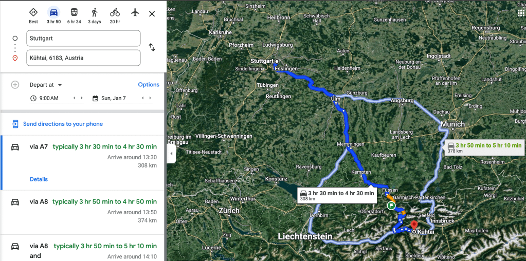 As stated in the opening few lines, our favorite Family-oriented resort, Kühtai, is in the Tyrol region in Austria. About 3.5 hours’ drive from Stuttgart, we fell in love on our first trip during the previous winter and repeated the trip this past December. In fact, this was the first place we ever went when we first arrived in Germany, and it amazed us from start to finish.