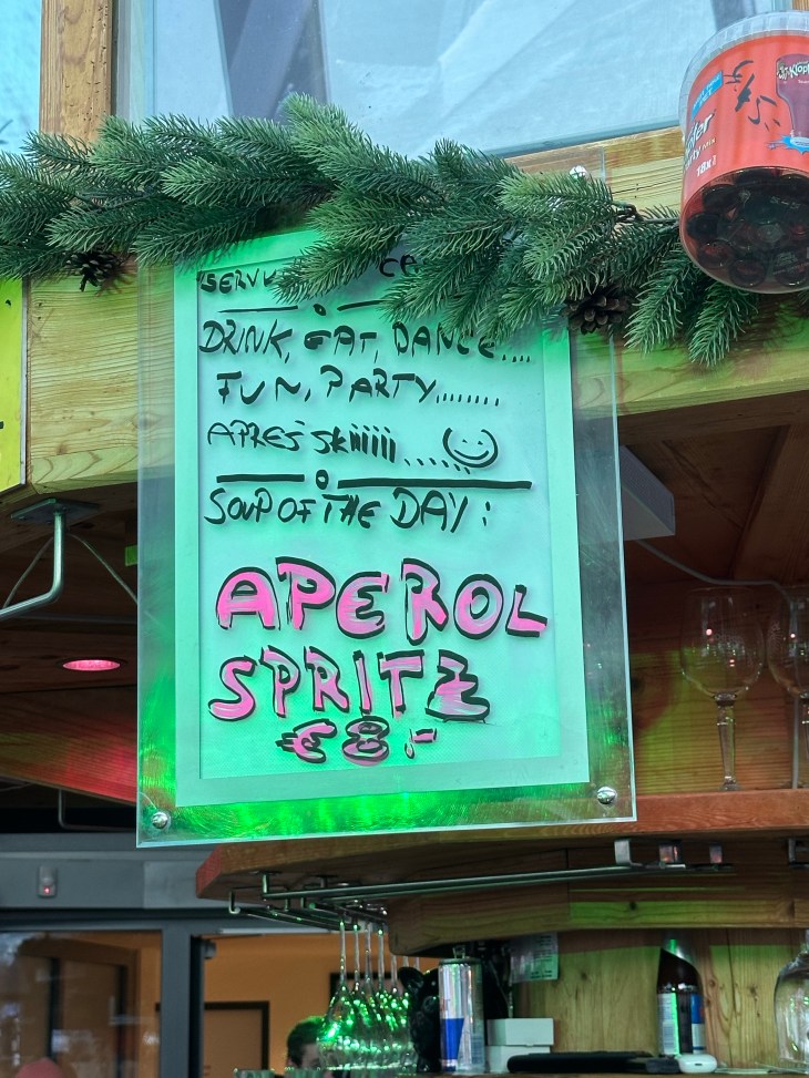 I thought one of the best parts of the south side of the mountain was honestly the ability to ski or ride an icy slope straight into more than one aprés ski bar. We didn’t fully partake due to the crowds and fact that we had our kiddos with us, but they’ve been skiing in Europe long enough they fully understand Mommy and Daddy dropping by the aprés bar for a post-slope drink or two. They’re troopers about hanging and letting us relax for a few…so long as the hot chocolate continues to flow. Just FYI: I probably wouldn’t take my kids to Dorfschenke , but if you’re without kids, it’s pretty awesome looking.