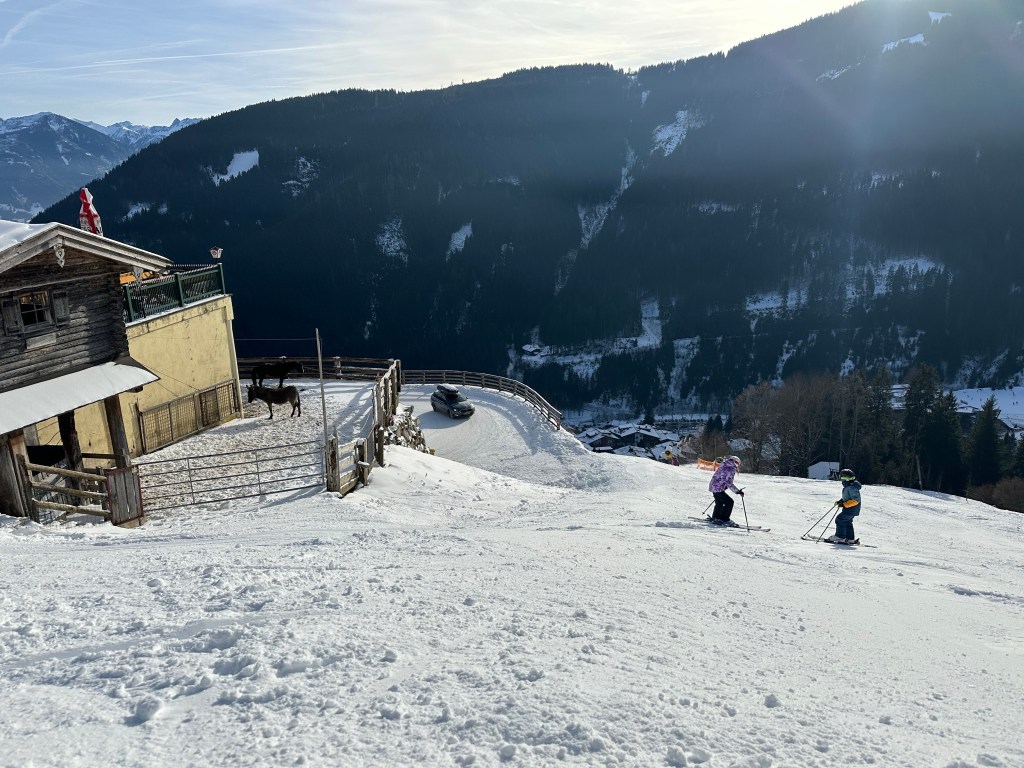 After a little exploring, I found the north side of Schmittenhöhe to be a lot more fun with the kids as the south side just didn’t have enough snow and was steep, icey and too ski’d out by 11AM. After a few connecting runs, the slopes really opened up nice and wide giving all of us a lot more room to move around in. Also, the huts on the north side I felt were a lot more charming, tucked away, and more homey feeling than those on the south side which I’ll always gravitate towards.